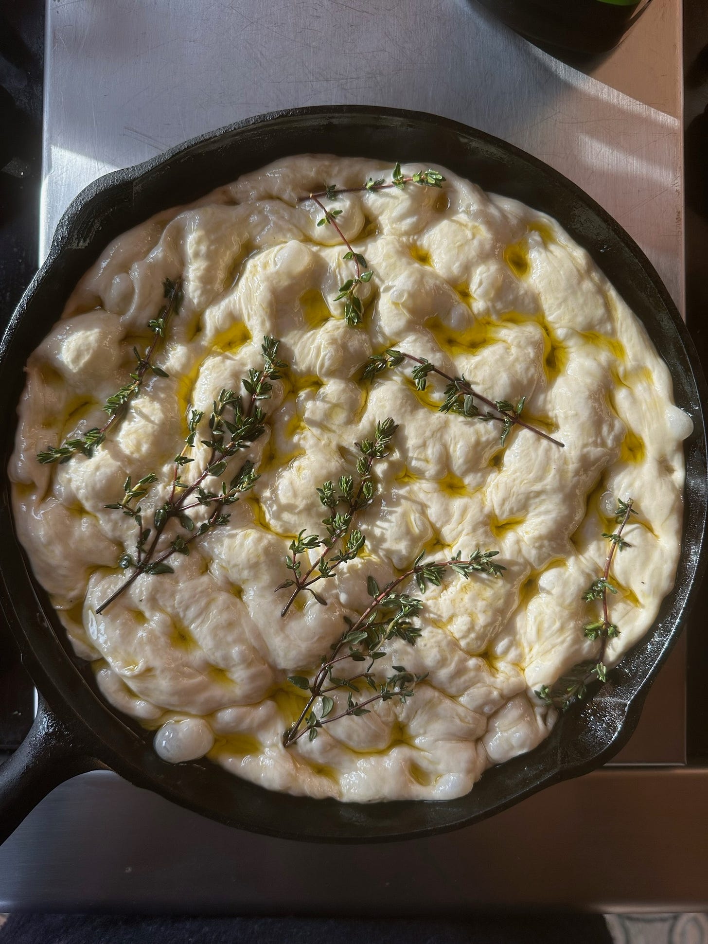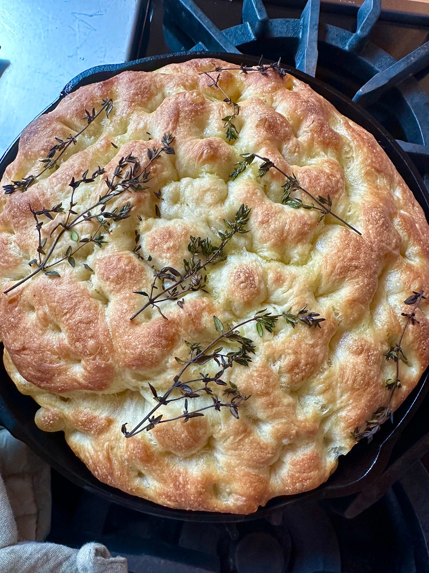 Focaccia is among my favorite things to bake, because it’s decidedly impressive and deceptively simple. My go-to recipe is this one from Serious Eats, which requires no kneading and calls for a cast iron skillet. It’s the perfect weekend project, if you’re looking for one. My notes are as follows: